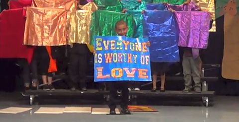 This video from a very talented group of kindergartners celebrates diversity and acceptance. The right has long argued that the gay agenda would be forced on our children. If by gay agenda they mean accepting people for who they are and showing love? You bet.
