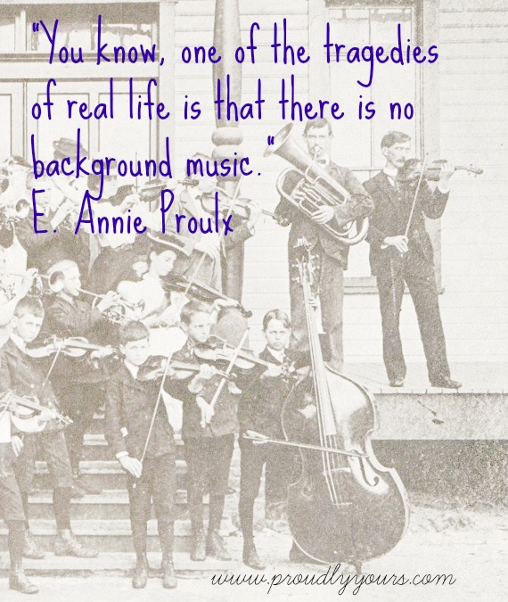 Hear that? That’s the sound of Monday in the background. Author E. Annie Proulx,the genius behind both The Shipping News and Brokeback Mountain, provides the prose for today’s meme. And we couldn’t agree more. While we can’t have a swelling orchestra follow us around today, maybe we can rock out to the radio during our drive home or tap our toes while to whatever’s playing at the grocery store. Hope you find time to do the same!